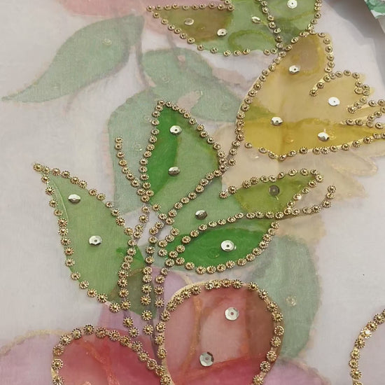 Hand-Painted Floral Organza Dupatta with Golden Sequin Detailing