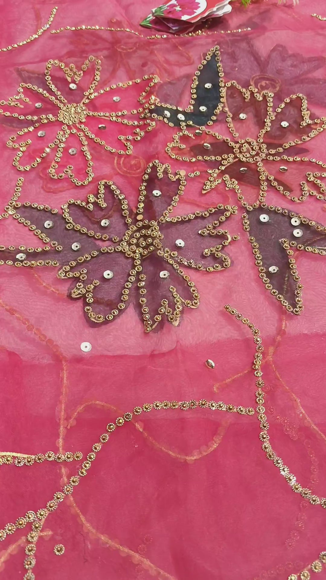 Make a bold style statement with this exquisite red organza dupatta, designed to add luxury and elegance to any outfit. Crafted from premium sheer organza, this dupatta features hand-painted floral patterns in deep tones, beautifully highlighted with golden sequin detailing for a glamorous sparkle.